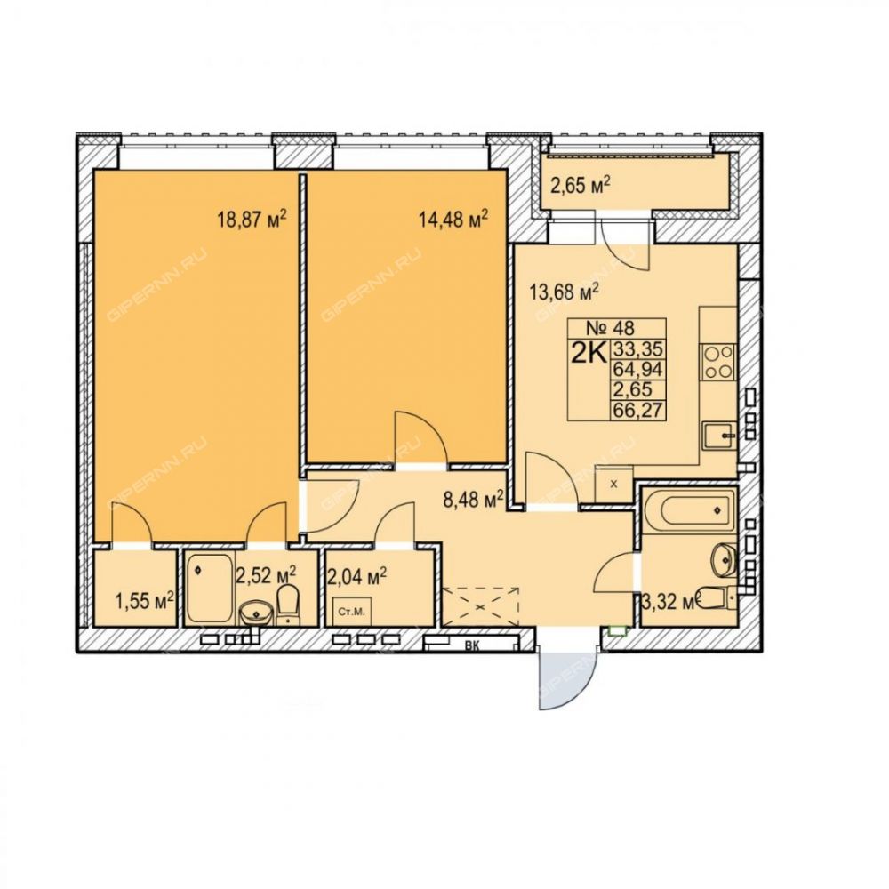 Площадь66,27 / 33,35 / 1