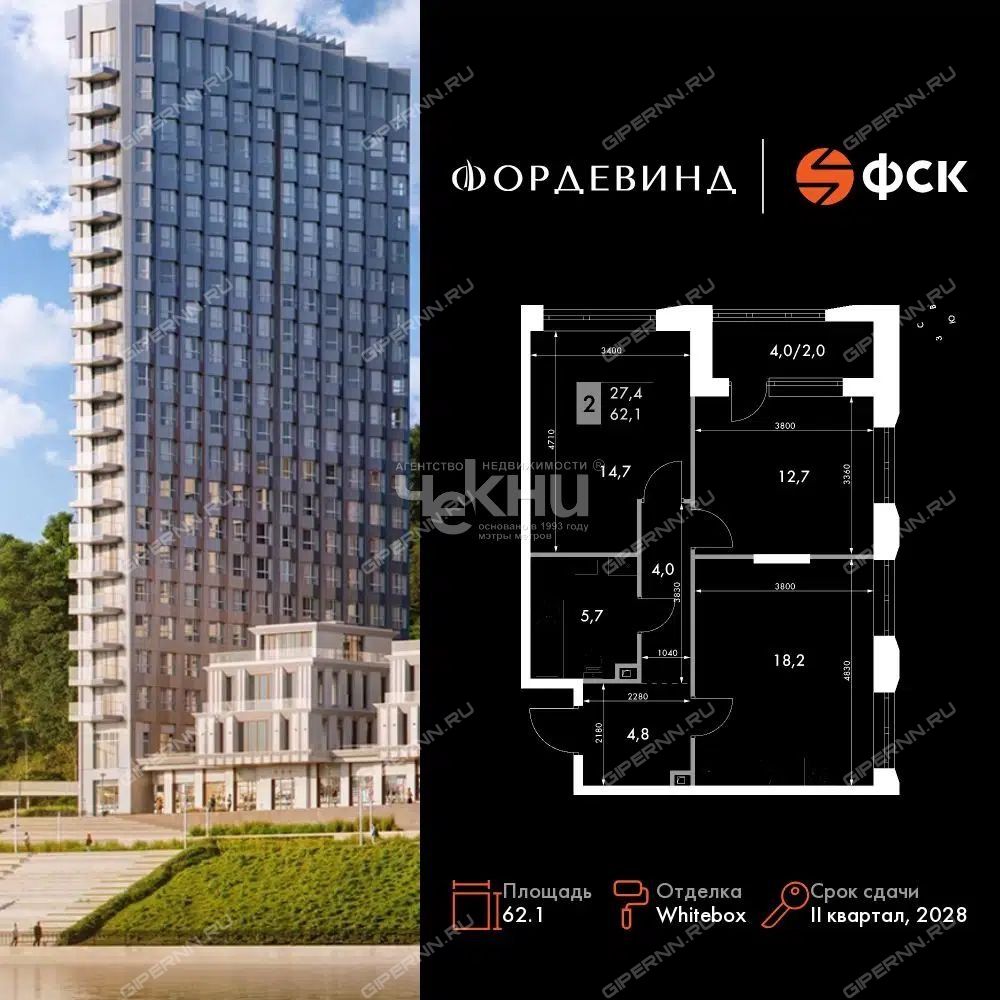 | Площадь | 62,1 / 27,4 / 8 |