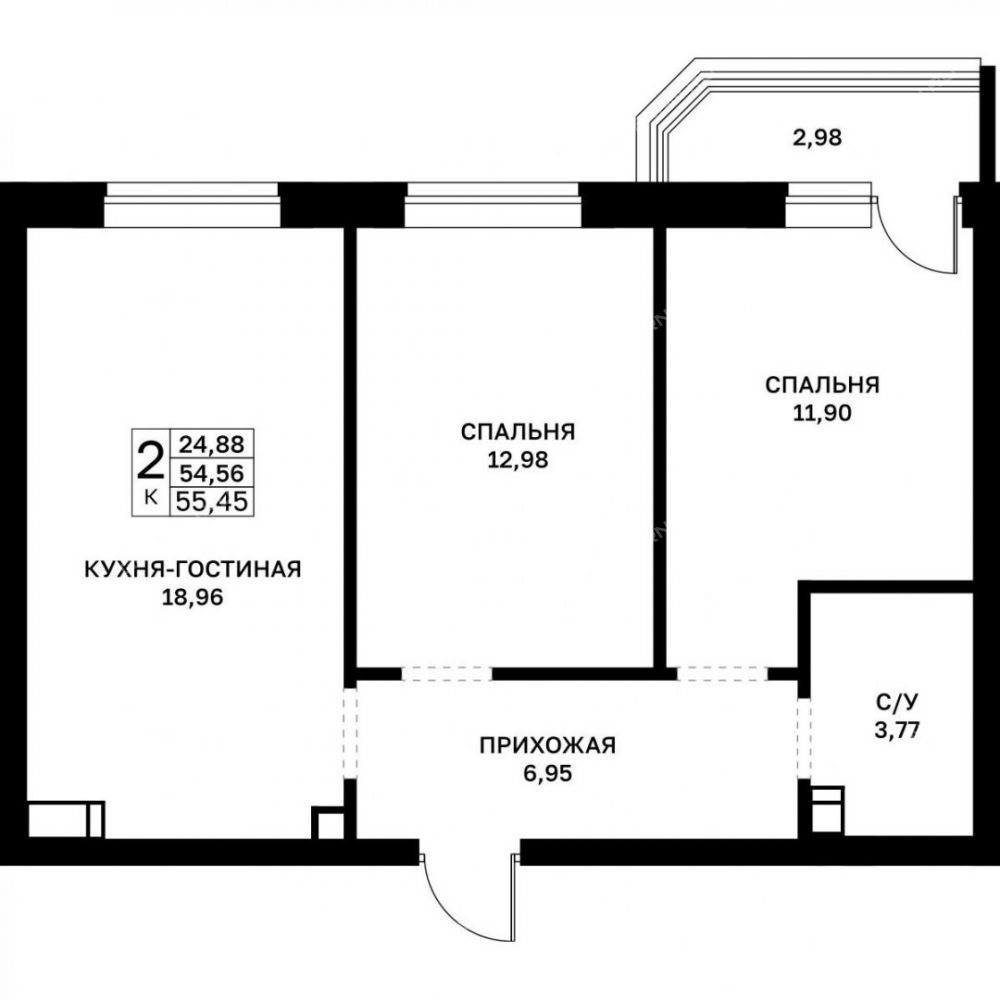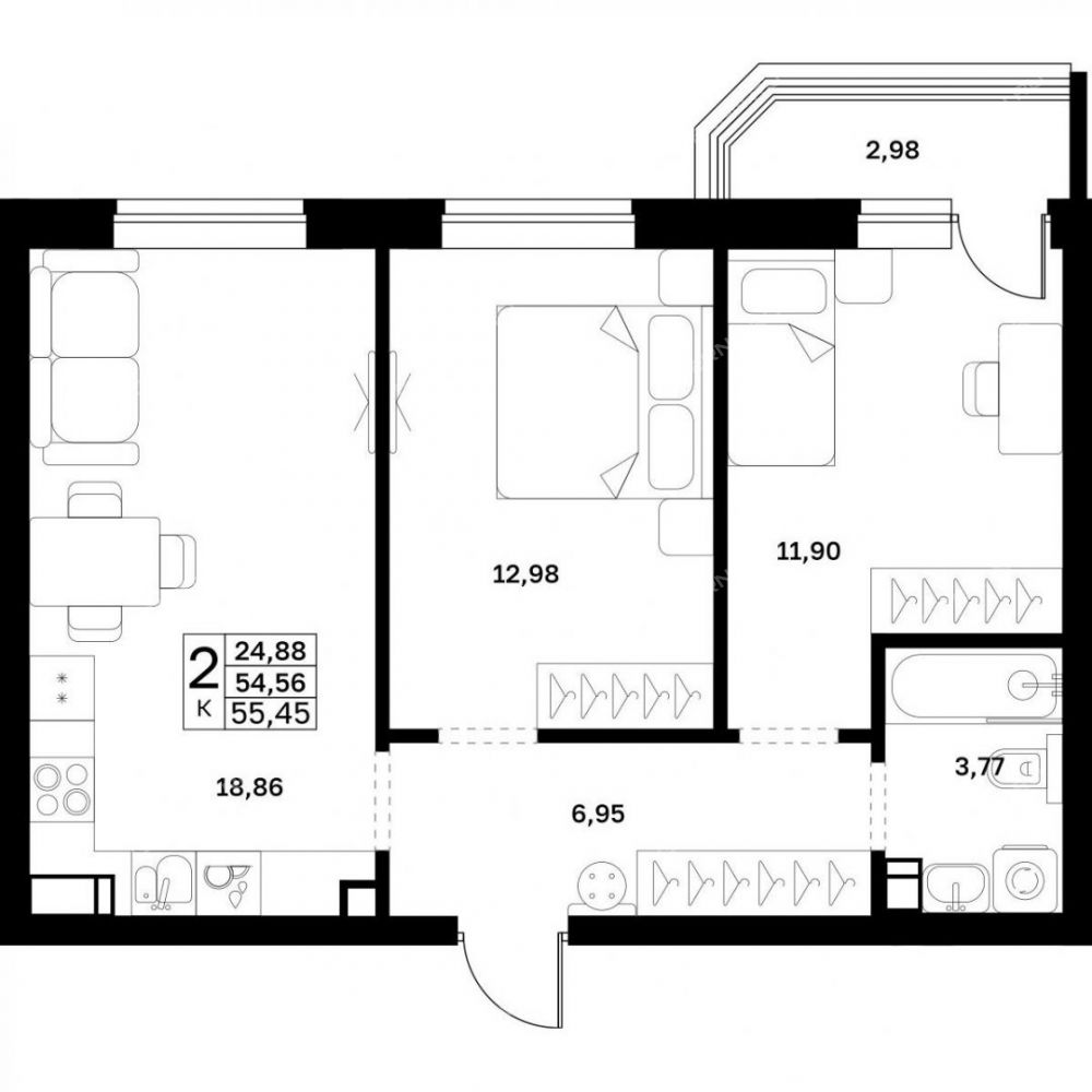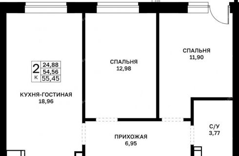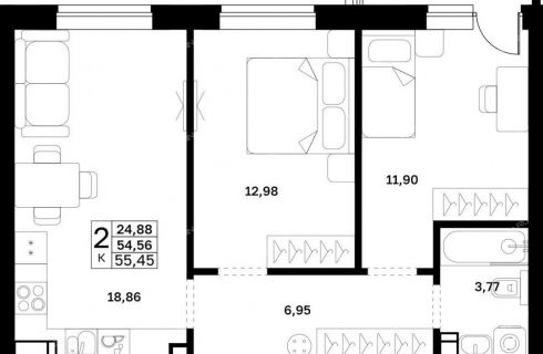 Площадь55,45 / 24,88 / 1