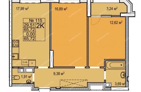 | Площадь | 65,72 / 29,51 / 17,99 |