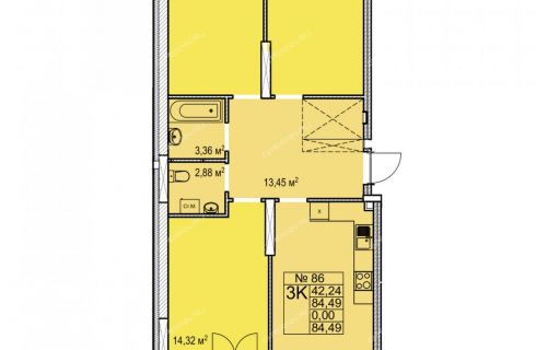 | Площадь | 84,49 / 42,24 / 19,31 |