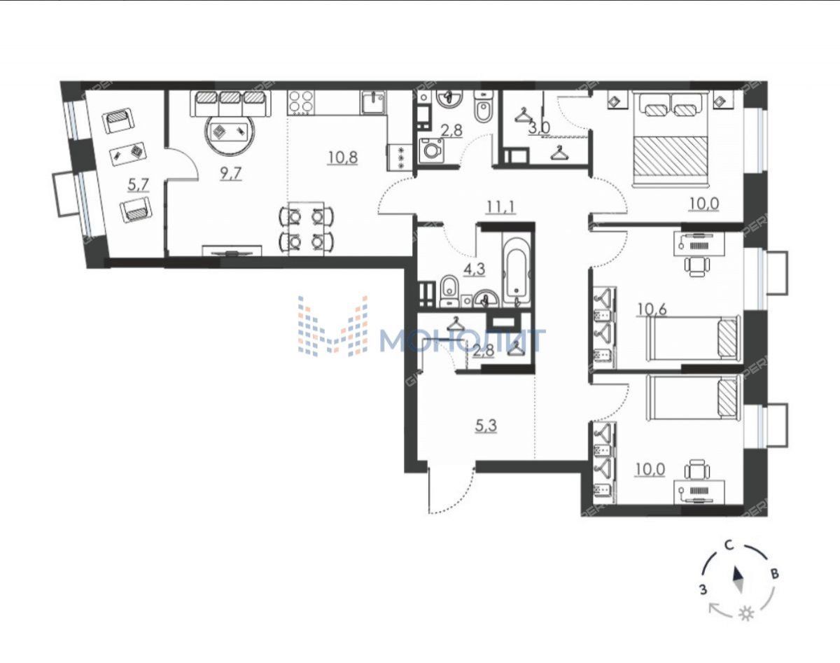 Продажа 4-комнатной квартиры в новостройке на ул. Витебская, 25Канавинский район, Нижний Новгород