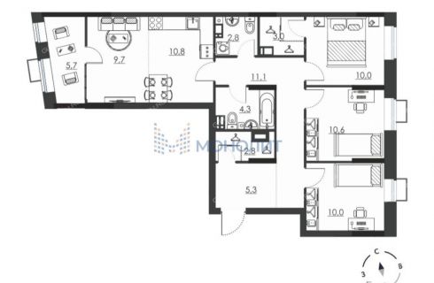 | Комнат | 4 комнаты |