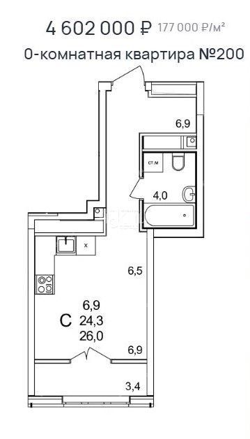 Площадь | 26 / 6,9 / 1 |
