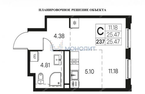 | Площадь | 25,5 / 11,2 / 1 |