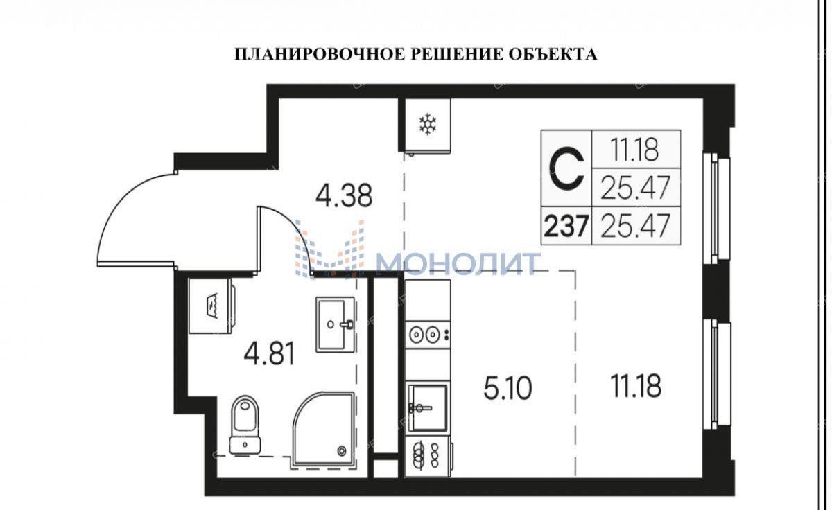 Эта студия в ЖК идеальное решение для жизни студента или востребованного городом специалиста либо для гостя Нижнего Новгорода.