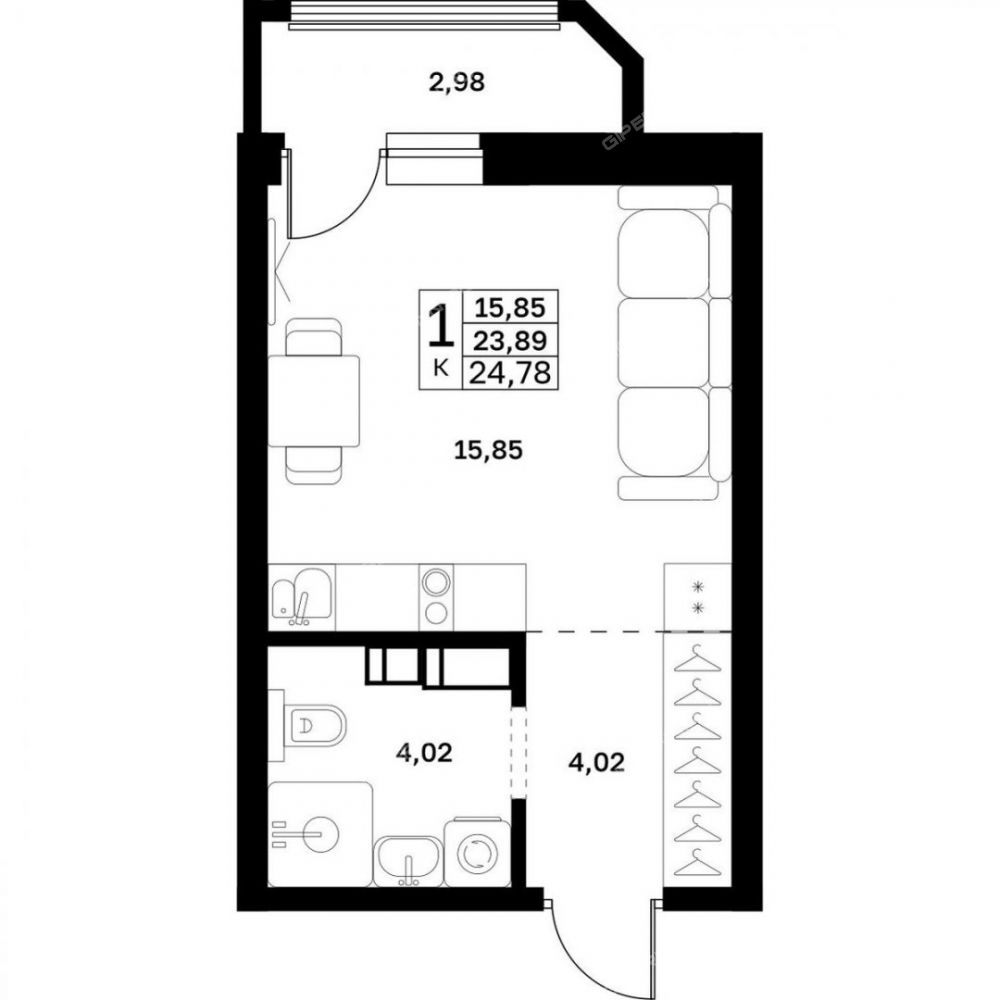 Площадь24,78 / 15,85 / 1