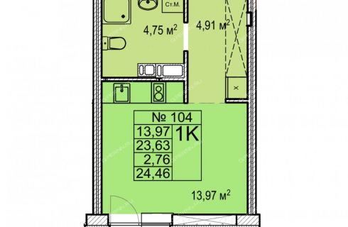 | Площадь | 24,46 / 13,97 / 1 |
