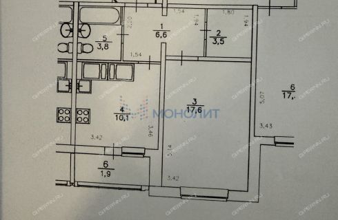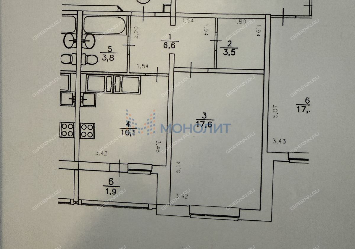 Площадь: Общая площадь 41,6 кв. м., жилая площадь 17,6 кв. м., площадь кухни 10,1 кв. м. плюс застекленная лоджия.
