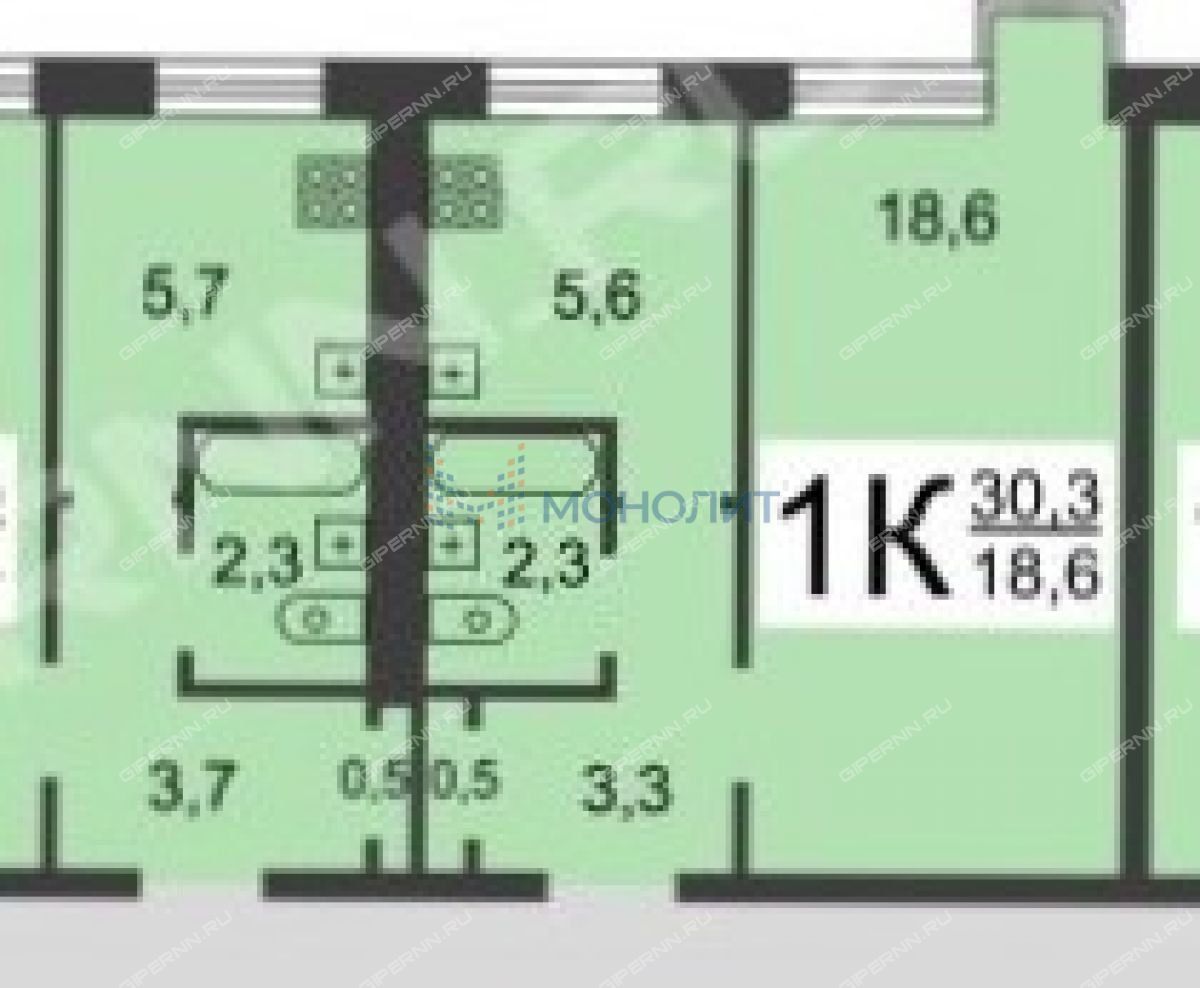 | Площадь | 30,3 / 18,6 / 5,6 |