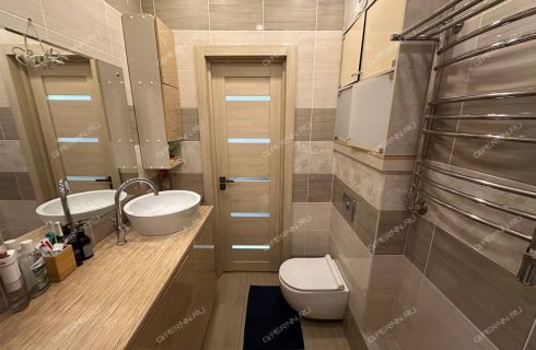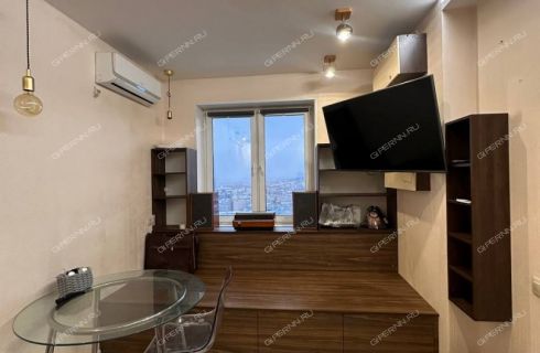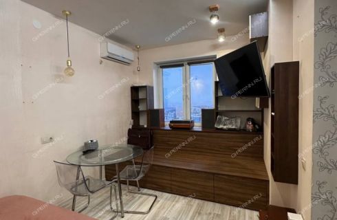Продается однокомнатная квартира в Афонино на улице Красная Поляна. Квартира расположена на 17 этаже 25-этажного дома. Общая площадь составляет 35,4 кв. м, из которых комната — 13 кв. м, а кухня-гостиная — 18 кв. м. Санузел совмещенный, с мебелью. В квартире установлен кухонный гарнитур с техникой и кондиционер.