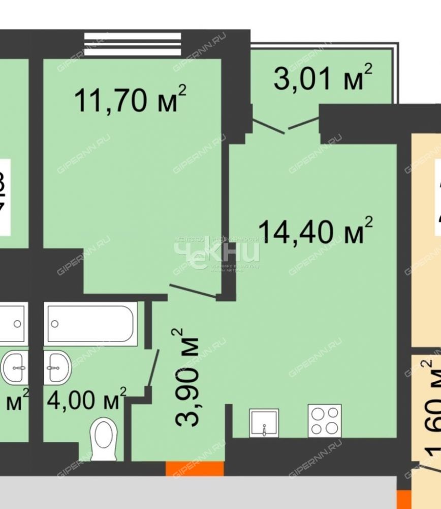 | Площадь | 34 / 11,7 / 14,4 |