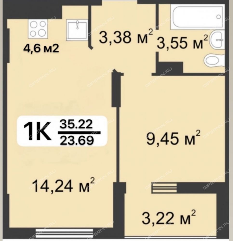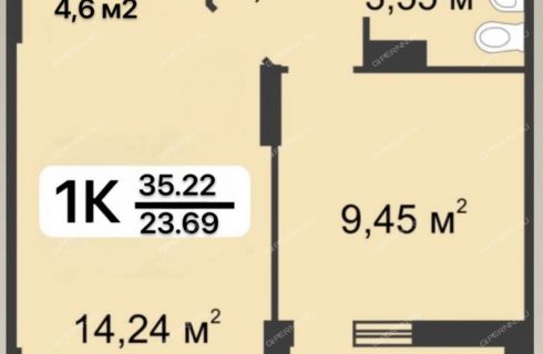 | Площадь | 35,22 / 9,5 / 18,84 |