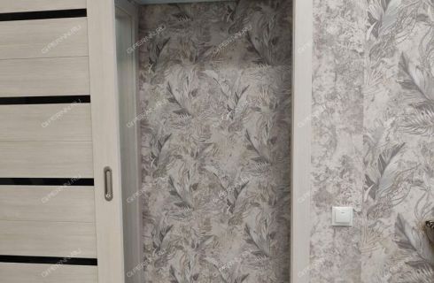 В спокойных светлых тонах, на стенах обои, на полу - линолеум. Межкомнатные двери дополняют гармоничный вид.