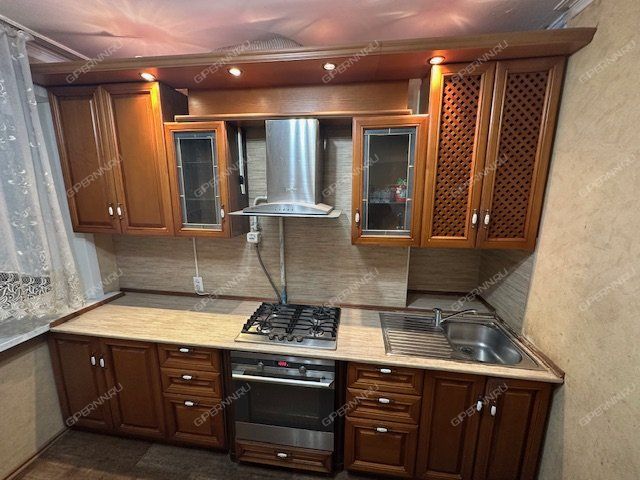 Комната большая .(16, 9 кв м). , С/уз. совмещен, стены выложены плиткой, заменены трубы, кухонный гарнитур со встроенной техникой. вся мебель и техника остаются в квартире.