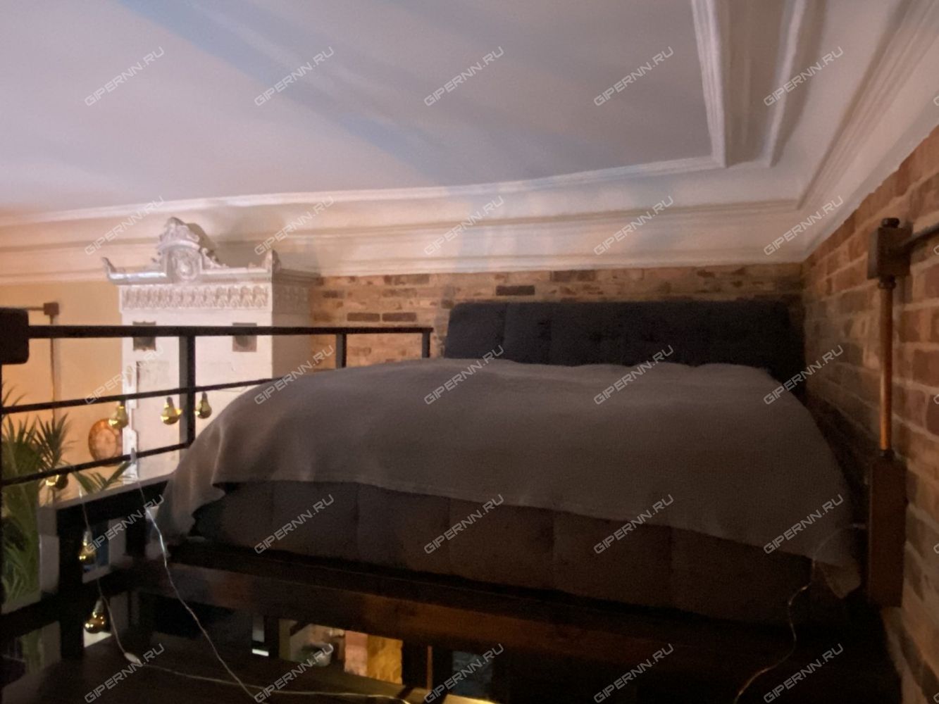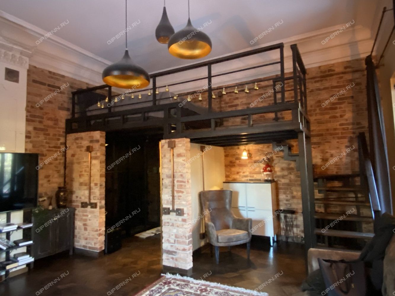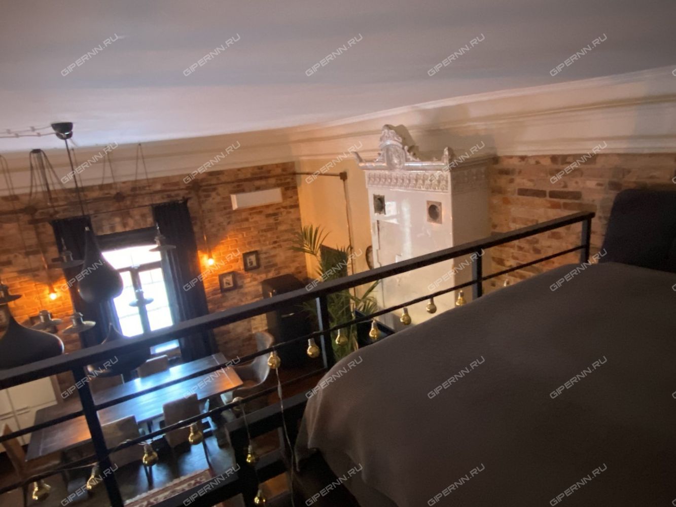 Высота потолка до 5 м позволила обустроить антресоль с полноценным спальным местом