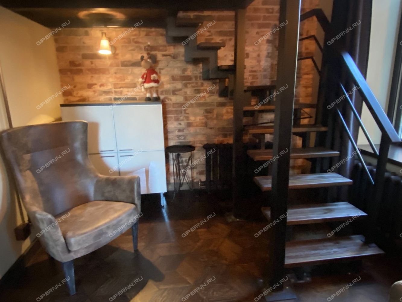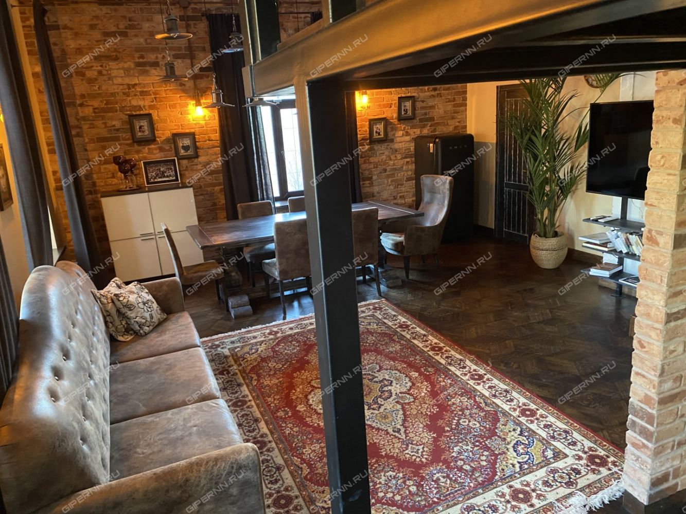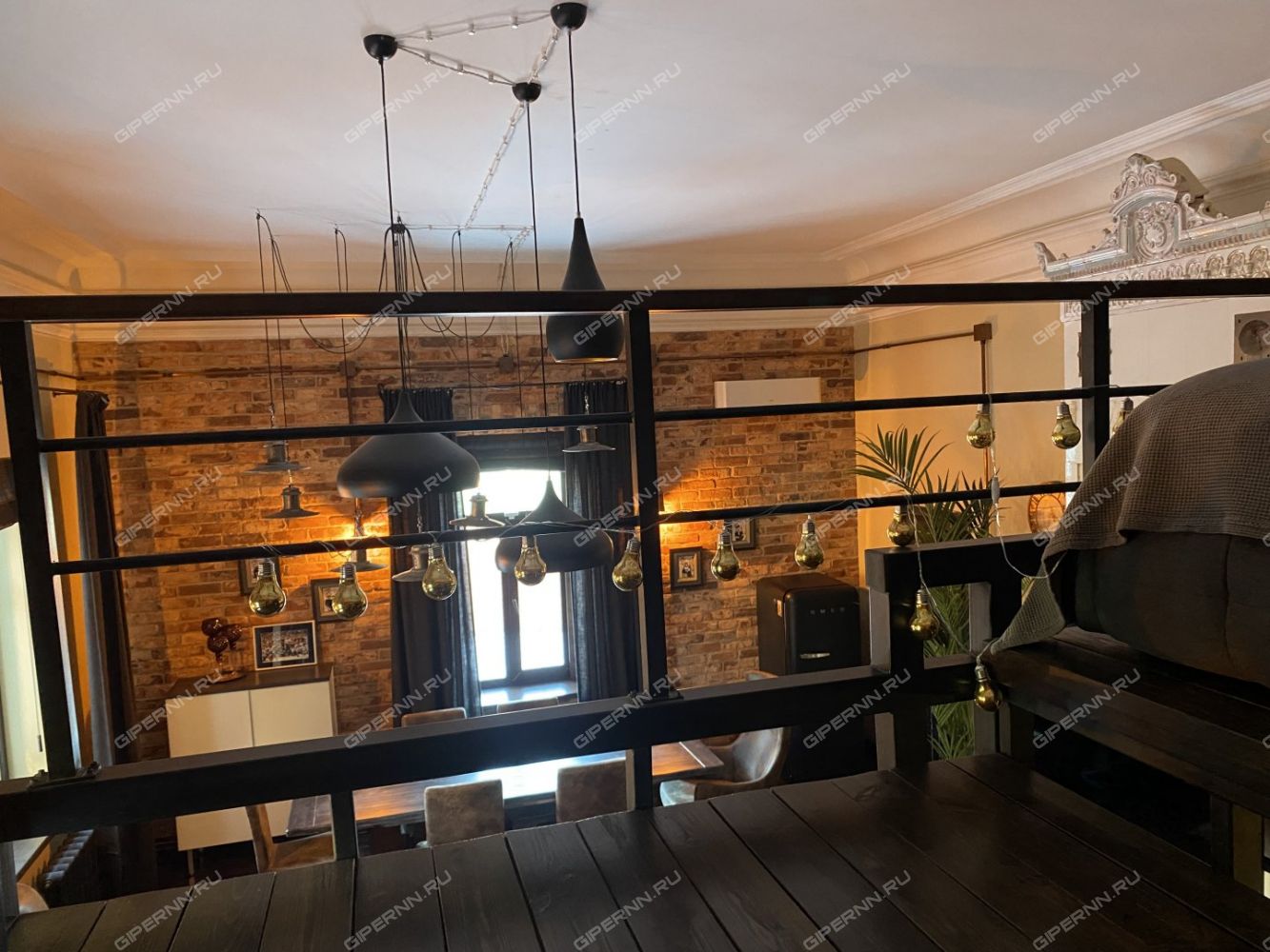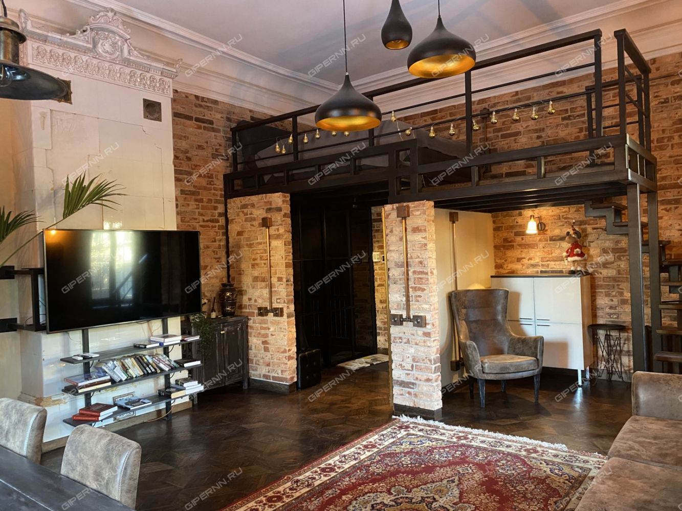 Высота потолка до 5 м позволила обустроить антресоль с полноценным спальным местом