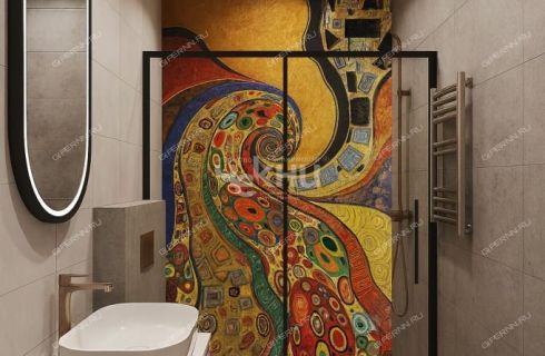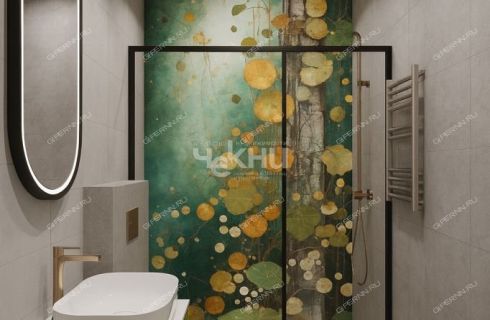 Санузел: плитка/керамогранит, тумба, раковина, душевое ограждение, зеркало, аксессуары.