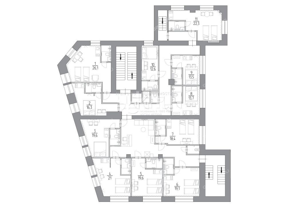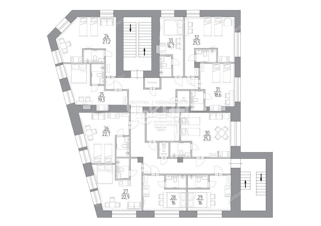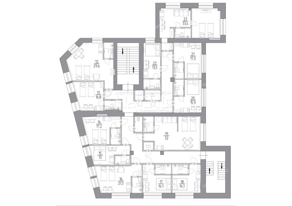 34 апартамента от 12 до 33 м