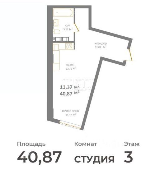 | Площадь | 40,87 / 11,37 / 12,36 |
