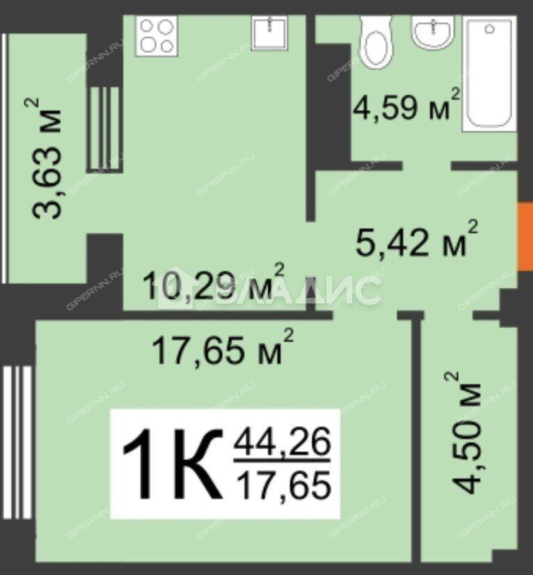 | Площадь | 47,89 / 17,65 / 13 |