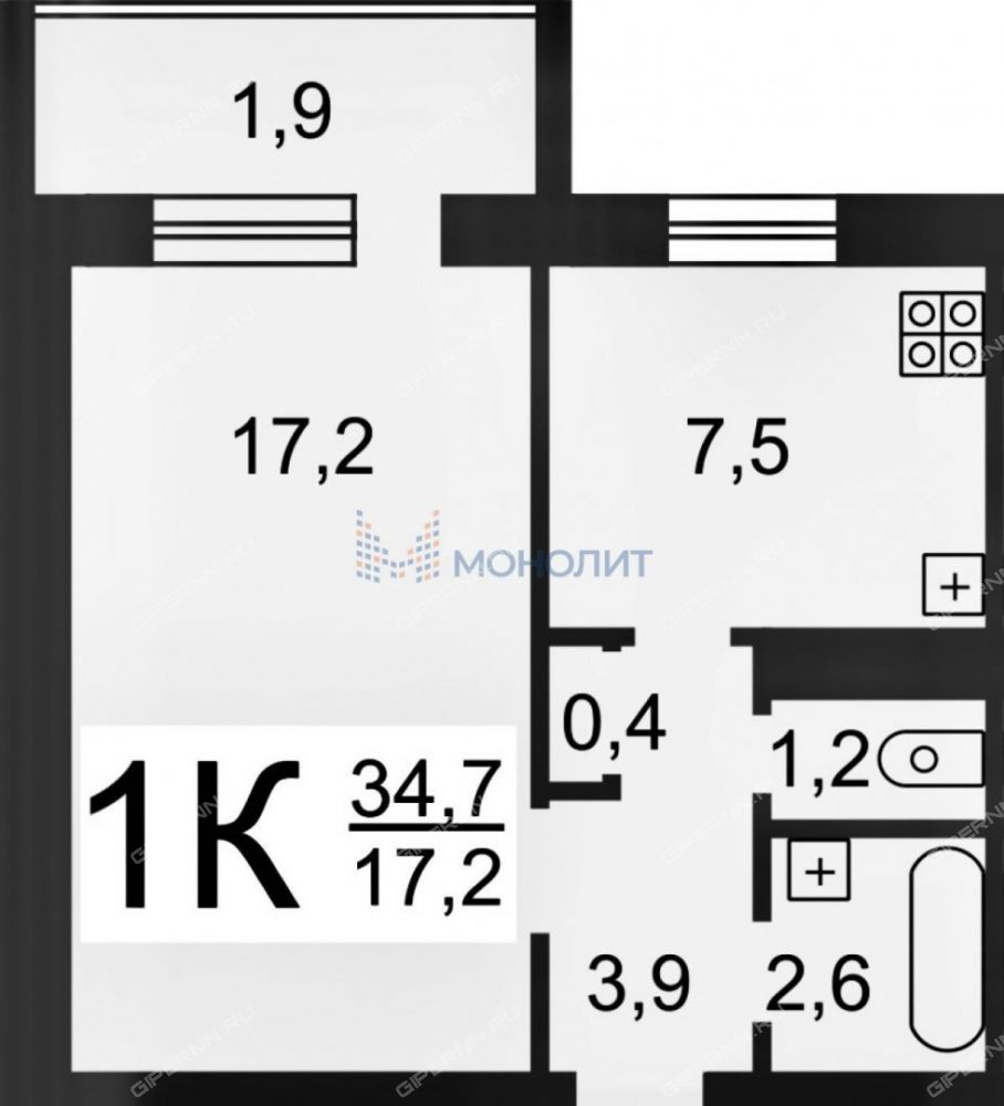 | Площадь | 34,7 / 17,2 / 7,5 |