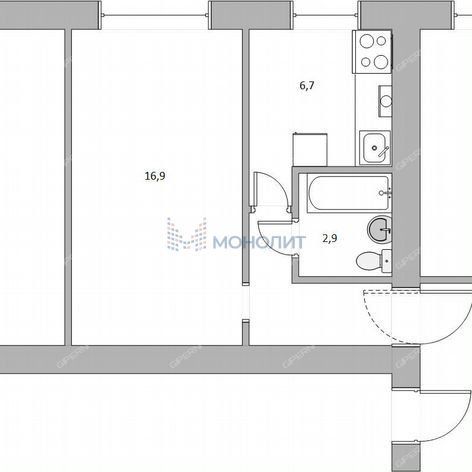 | Площадь | 30,5 / 16,9 / 6,7 |