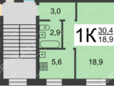 | Площадь | 30,4 / 18,9 / 5,6 |