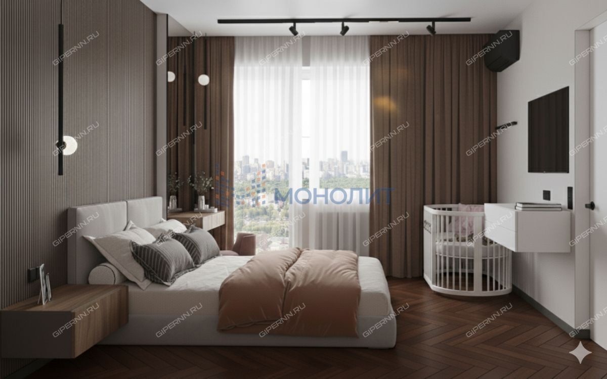 Просторная и светлая квартира с современным дизайн-проектом, в котором учтены все детали и этапы ремонта (проводка, сценарии и разводка света, чистовые материалы и мебель). Большая кухня-гостиная 28м², изолированная спальня 16.6м², большой санузел 5.2м² (идеально зонируется), лоджия 3.8 с панорамным остеклением. Высота потолков 2.75. Продается с предчистовой отделкой - квартира принималась профессионалами, идеальная стяжка, выведенные и ровные стены. 2 независимых стояка - на кухне и в санузле. Из окон открывается прекрасный вид на Советский и Нижегородский районы через благоустроенный в 2025 году склон.