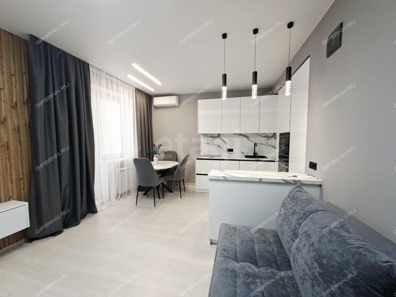 Простpaнство квартиры с продуманным функционалом и красивым интерьером. В квартире остается вся мебель и предметы интерьера. Кухонный гарнитур оснащен всей необходимой бытовой техникой: варочная панель, вытяжка, духовой шкаф, посудомоечная машина, встроенный холодильник.. В ванной и прихожей установлены теплые полы. Потолки по всей квартире натяжные белые матовые. В кухне-гостиной установлен кондиционер.