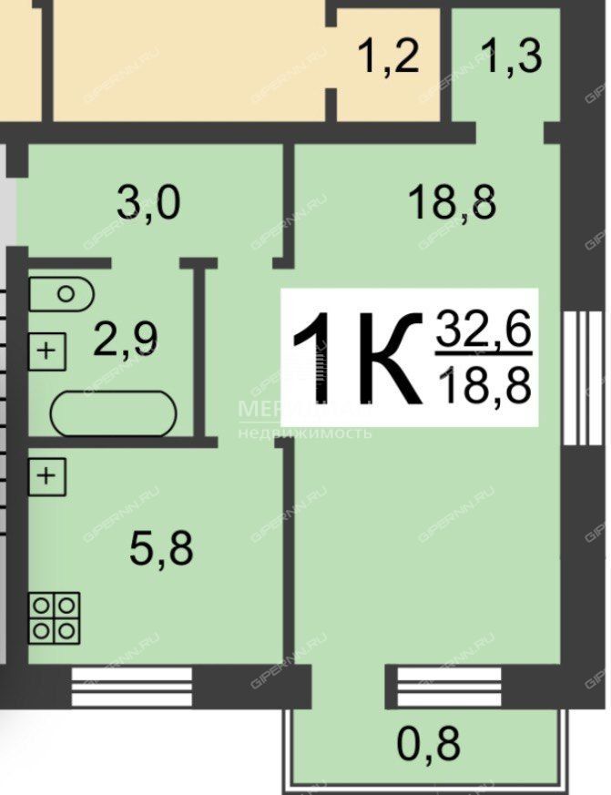 Площадь | 31,8 / 18,6 / 5,8 |