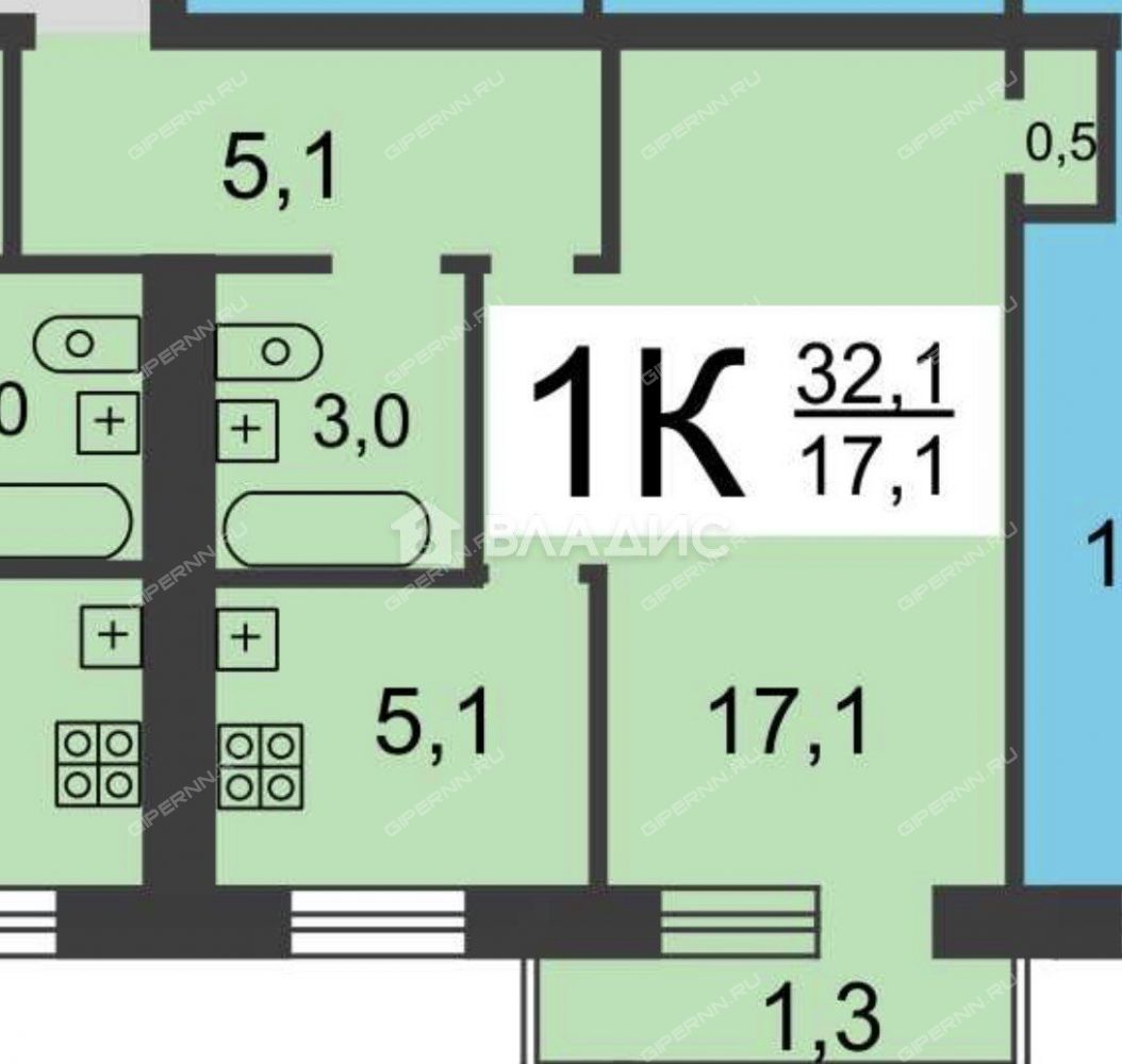 | Площадь | 32,13 / 17,1 / 5,4 |