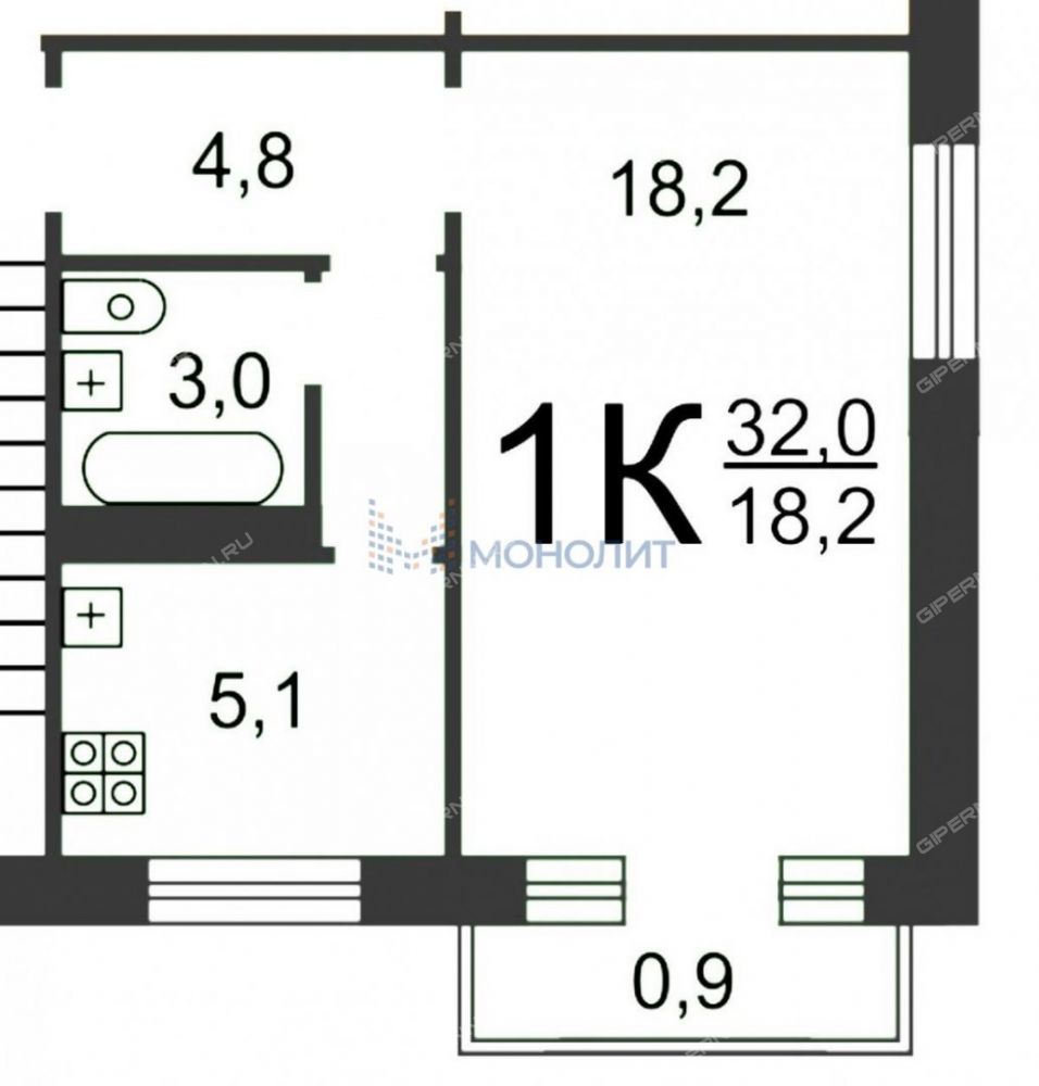 | Площадь | 31,3 / 18 / 5,1 |