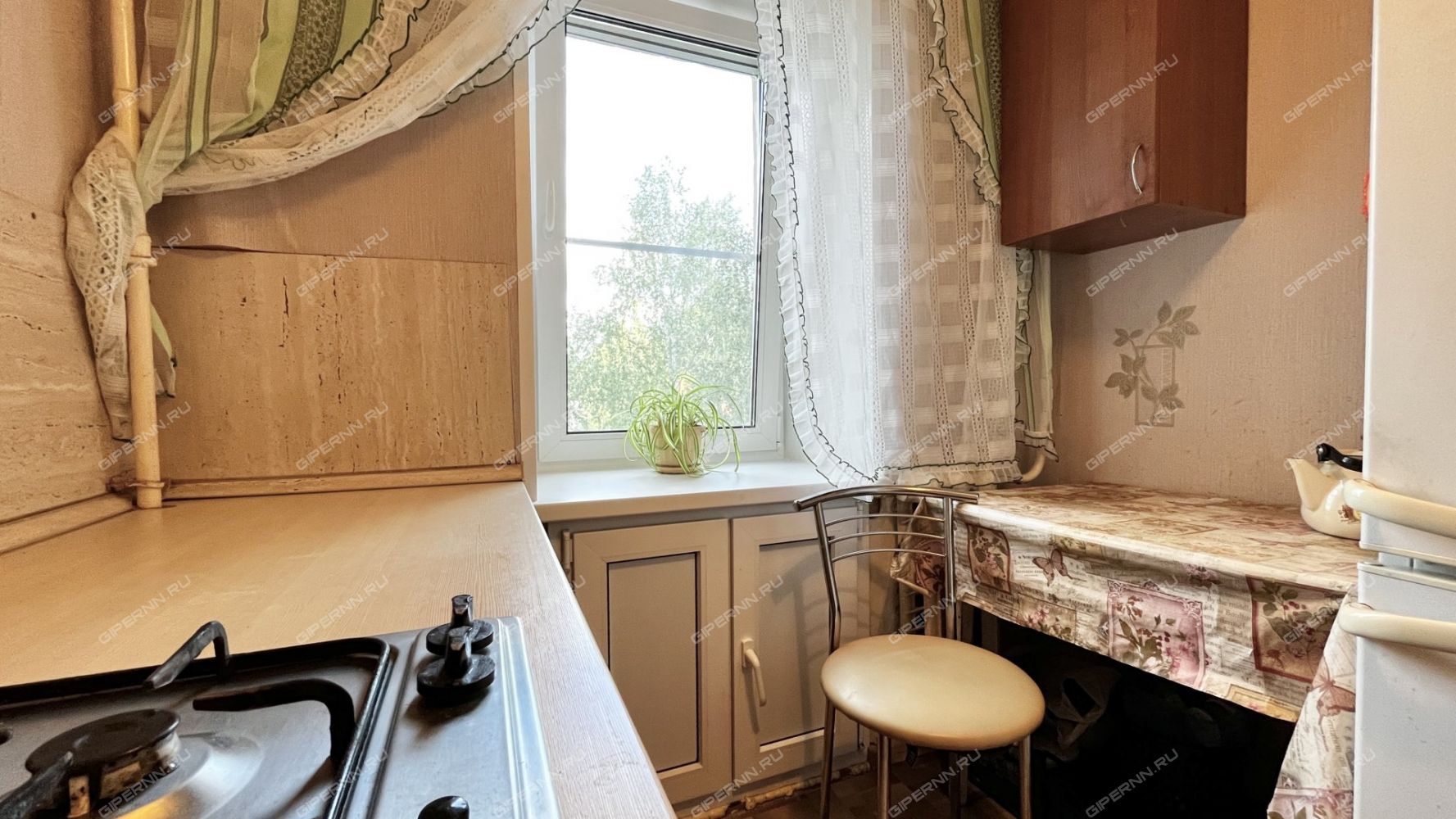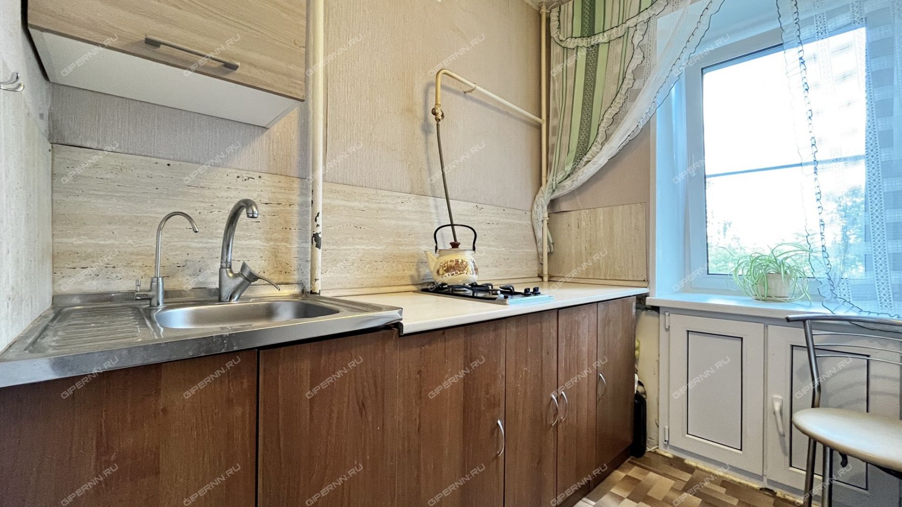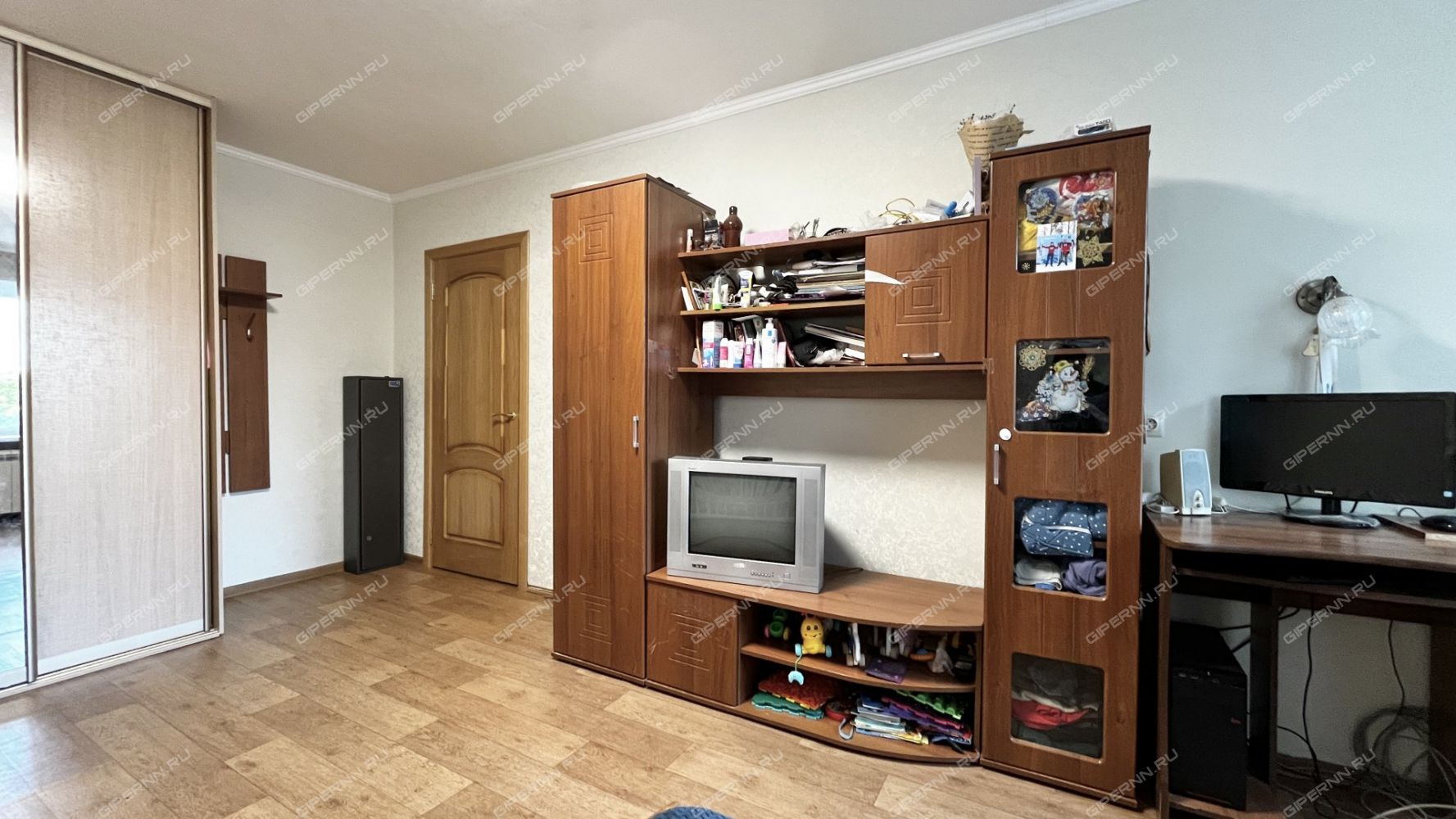 Квартира имеет удачную планировку. В комнате (17,2 кв.м) можно свободно разместить несколько спальных мест. В прихожей есть место для гардероба. Санузел совмещенный с ванной в кафеле. В квартире установлены окна ПВХ в комнате и на кухне, новые радиаторы отопления - в комнате, заменен полотенцесушитель в ванной. В комнате останься шкаф-купе, на кухне - кухонный гарнитур. В прихожей требуется обновление обоев.