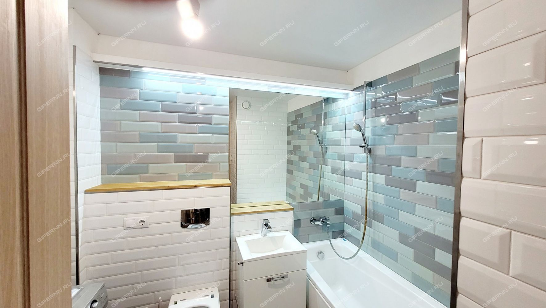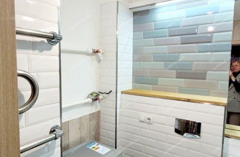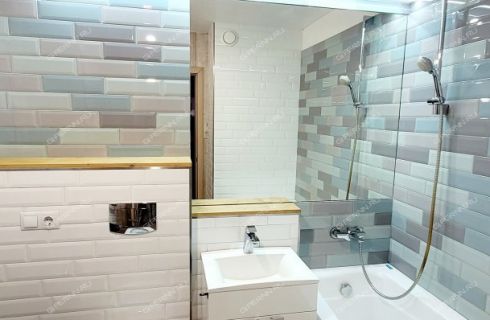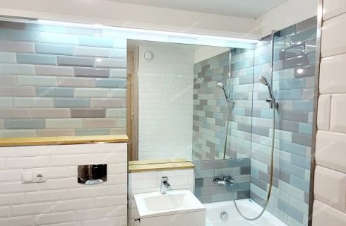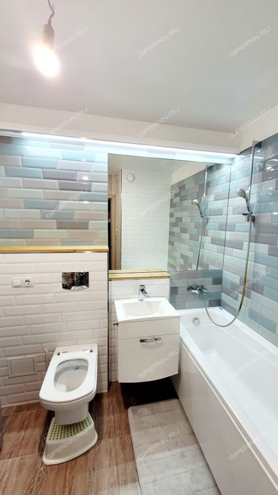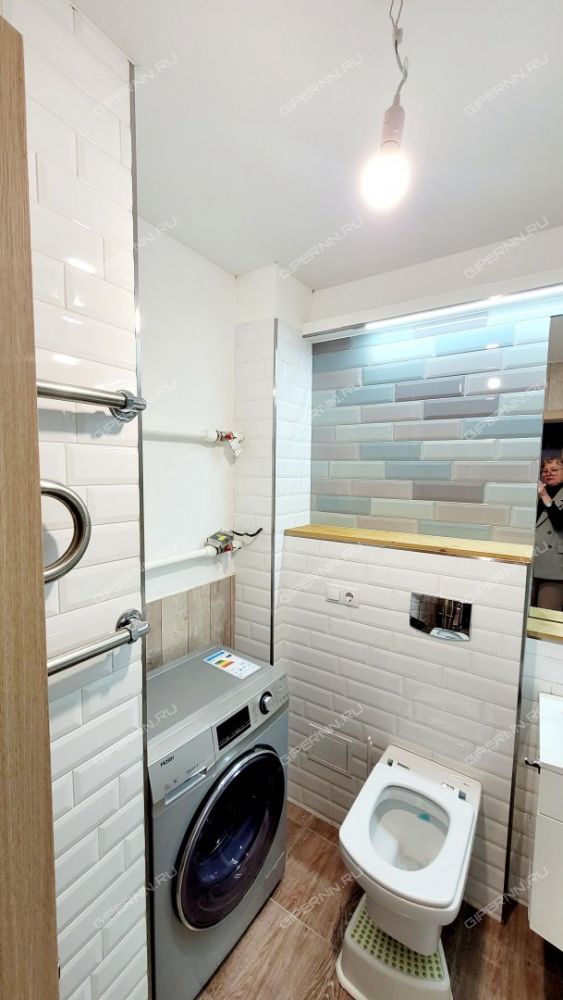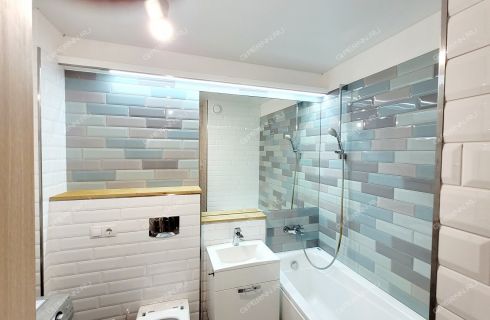 Совмещенный санузел в современном кафеле - 3, 4 кв. метров, вместительная прихожая - 4, 6 кв. метров.