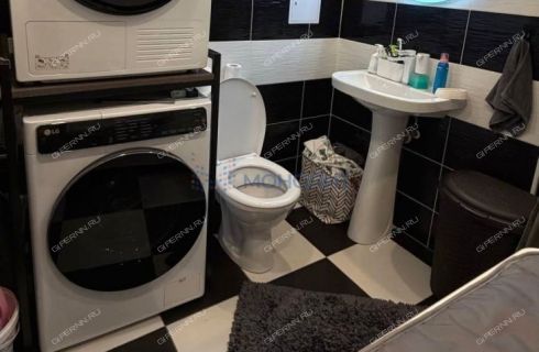 «Домашний SPA» санузел (6,2 м²): Здесь не нужно тесниться! Площадь позволяет с комфортом разместить и полноценную ванную, и стиральную/сушильную машины, и дополнительную мебель. Выполнен в современной плитке.