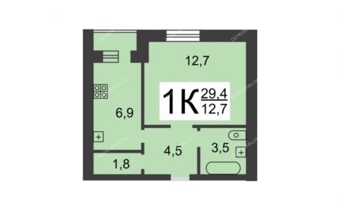 Квартира общей площадью 28,1 кв.м + 1 кв.м лоджия. Из окон открывается живописный вид на просторный зеленый двор и школу.