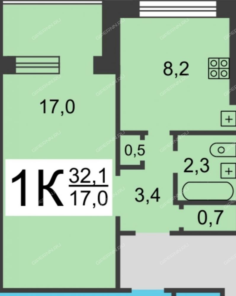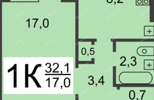 Планировка: Гостиная 17, 2 м Кухня 8, 2 мКоридор 5 мСанузел 3 м