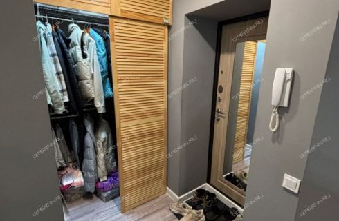 Большая лоджия на комнату и кухню. В прихожей вместительная гардеробная.