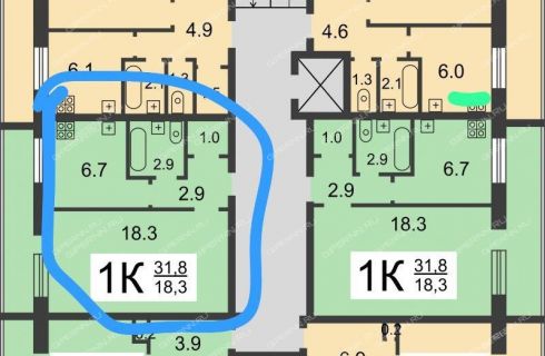 | Площадь | 31,8 / 18,3 / 6,7 |