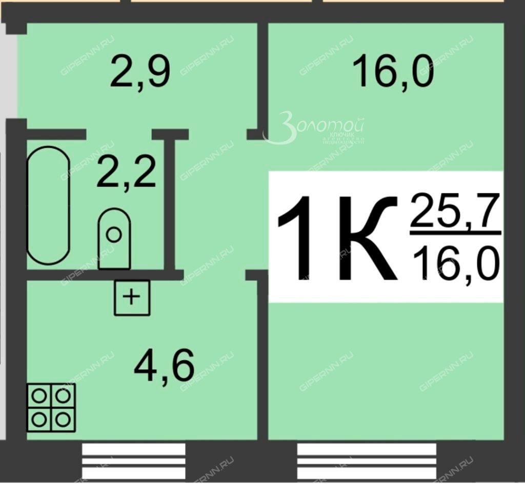 - Общая площадь 26 кв.м
