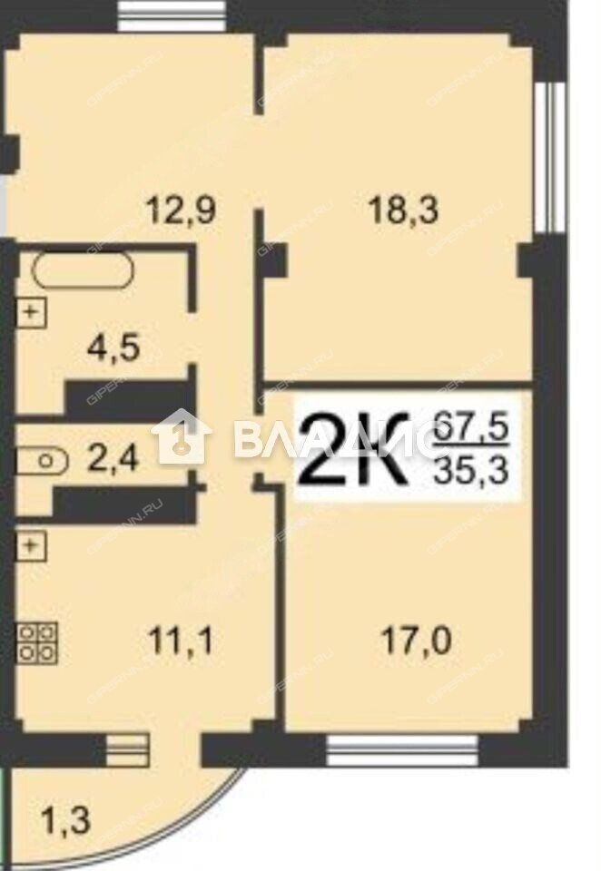 | Площадь | 67,5 / 35,3 / 11,1 |