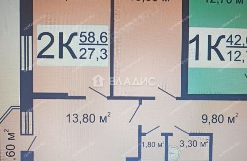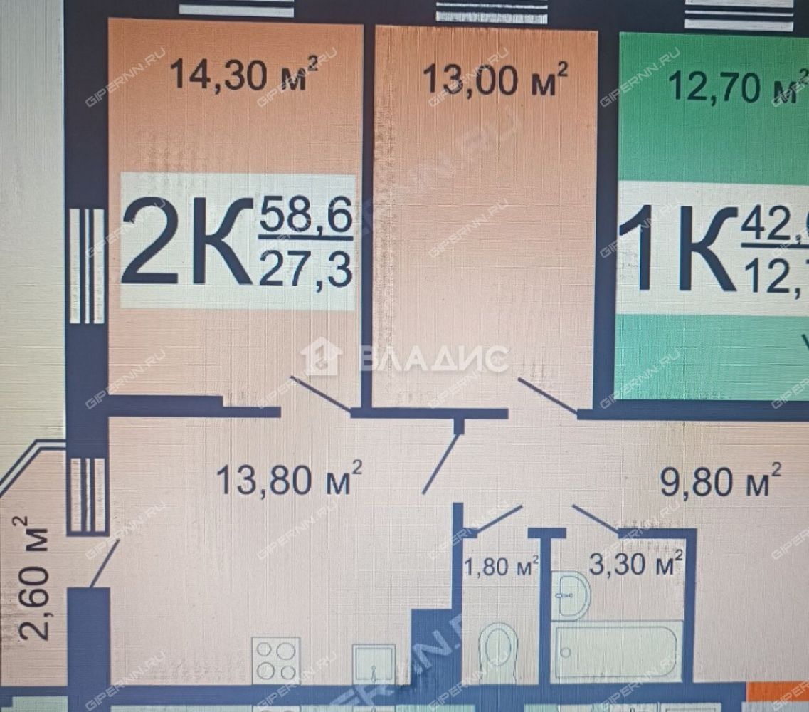 Площадь | 58,6 / 27,3 / 13,8 |