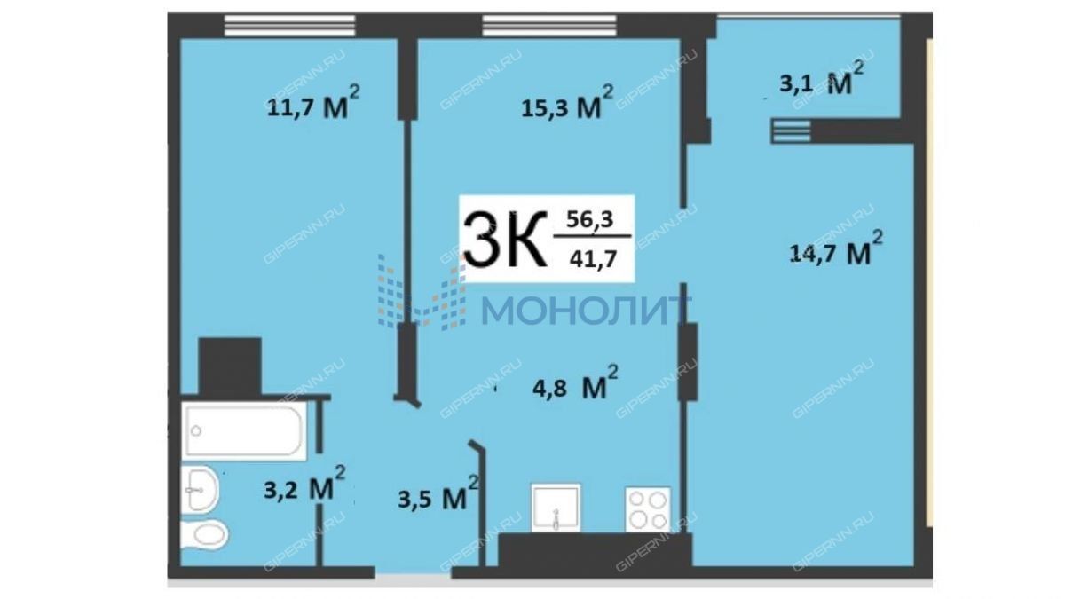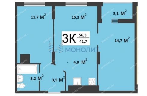| Площадь | 56,3 / 27 / 20 |