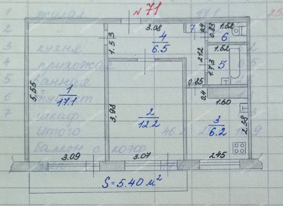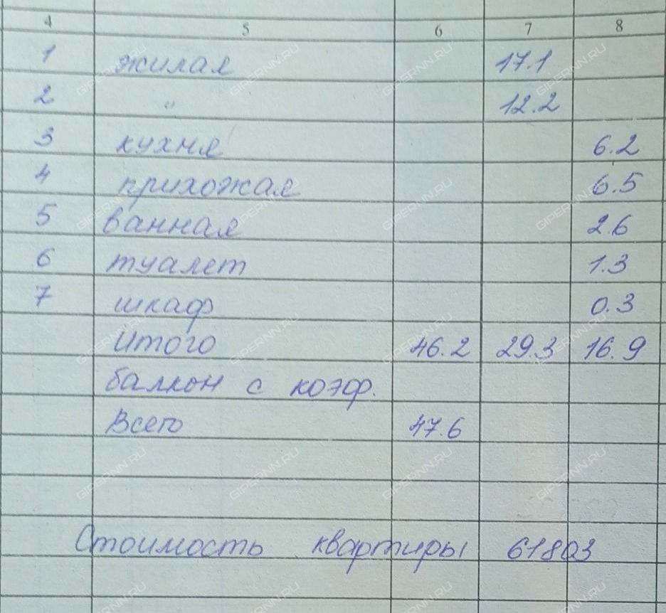| Площадь | 46,2 / 29,3 / 6,2 |