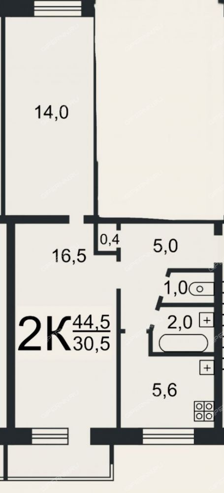 | Площадь | 45,4 / 30,5 / 5,6 |