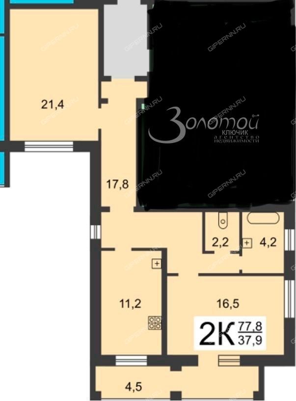 - Две изолированные комнаты: просторная комната 21,4кв.м и уютная комната 16,5кв.м