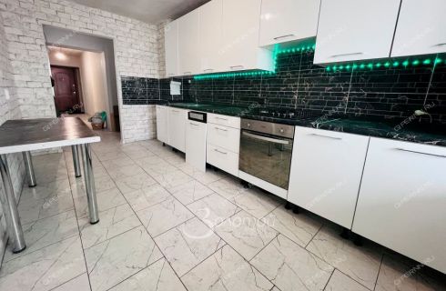 - Комфортная кухня : 11,2 кв.м с качественным гарнитуром, пол выложен плиткой