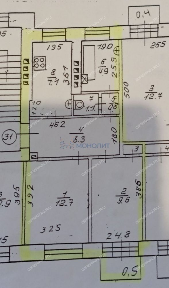 Комнаты-12.5 и 10 м .Кухня-7.3 м.
