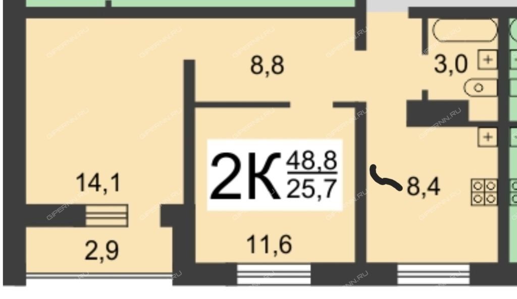 | Комнат | 2 комнаты |